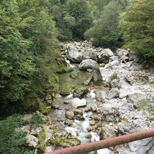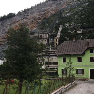 Having passed through the border into Slovenia, we then dropped down the other side of the mountain, continuing with the narrow winding, rough roads, but saw beautiful scenery with other mountains in the distance, and the quaint ski resorts.