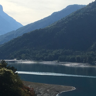 We left Barcelonnete and headed to Lac de Serre-Poncon. We had travelled along the top end of the lake previously and it was so beautiful, we thought we would take a look from the other side. We saw some interestingly dressed roundabouts on the way, and then travelled the typical mountain roads; narrow and winding but with beautiful views.