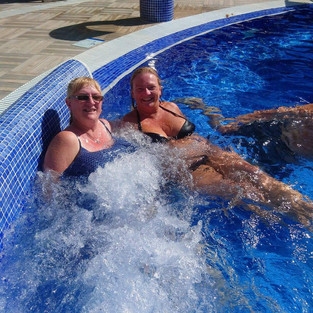 Today we cycled into Salou and met Mick and Julie at their hotel. Luckily we had taken our swimwear with us. We had a lovely day with them; catching up, drinking and enjoying the pool !