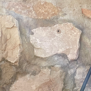 I had a relaxing morning sunbathing, and noticed this dog's head in the wall in front of me - a little spooky !